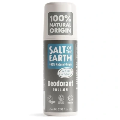 Salt of the Earth Natural Deodorant Roll On for Men Certified 100% Origin Ingredients Vegan, Long Lasting Protection, Leaping Bunny Approved Made in UK Vetiver & Citrus 75ml