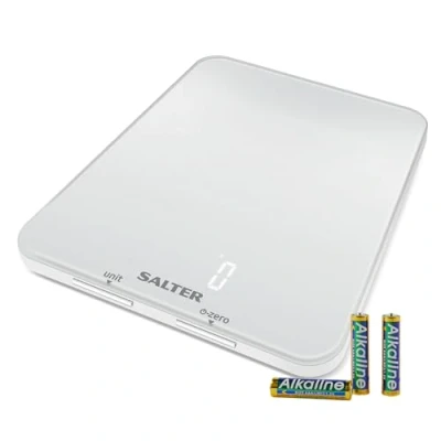 CurrysGet accurate measurements while cooking or baking with the Salter Ghost 1180 WHDR Digital Kitchen Scales. They've got an easy-to-read LED display that can be switched between metric and imperial measurements. There's even an Aquatronic function that measures liquids in ml or fl Oz. An add & weigh function lets you measure extra ingredients you add to the same bowl. Pressing the 'on-zero-off' button will reset the scales, so you can add the ingredients you need to weigh. The slim design has a hidden display that automatically lights up when you put a bowl or ingredients on the scales - so they're ready to use whenever you need it.
