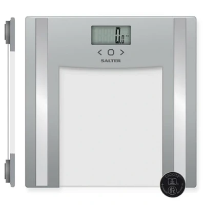 Measure your weight and body metrics with ease with the Glass Analyser Bathroom Scale, boasting 150 kg maximum capacity. Monitor your health and fitness with multiple body composition measurements; body fat, body water, muscle mass, bone mass and BMI. Including athlete mode and an 8 user memory, the bathroom scale can be used by the whole family and store their previous readings. Stylishly designed, the silver scale has a toughened safety glass platform which will look perfect in everyone’s bathroom décor. Complete with batteries, simply step on to the analyser scale to receive your instant weight readings, no need to press any buttons.