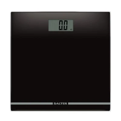 Salter 9205 BK3R Digital Bathroom Scale Large Display Electronic Weighing Scales For Body Weight, Toughened Glass Platform, Lightweight, Instant Readings, Carpet Feet & Batteries Included, Black