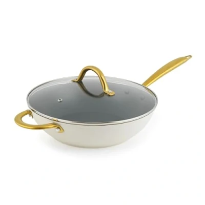 Salter Aerotech Pro 28 cm Wok 30 x Tougher Non Stick Coating*, Oven Safe Stir Fry Pan, Tempered Glass Lid with Steam Vent, Induction Suitable, Metal Utensil Safe, Forged Aluminium