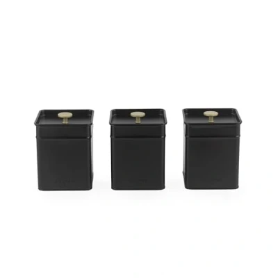 Salter Alchemy 3 Piece Canister Set Kitchen Storage, Tea, Coffee, Sugar Tins, Powder Coated Finish, Easy Open Lids, Long Lasting Freshness, Clean, Food Storage Black/Gold