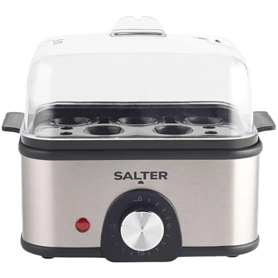 - Boil up to eight and poach up to two eggs at once with this Salter egg boiler - The 15-minute timer means you can enjoy your eggs exactly the way you like them - Its see-through lid makes it easy to check the eggs without lifting it off - Use the measuring cup to add just the right amount of water