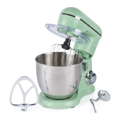 Salter British Bakes Stand Mixer 5L Food for Baking, 1300W, 10 Speeds, Easy Control Dial, Removeable Splash Guard, Mint Green Electric Kitchen Appliance with Whisk, Dough Hook and Beater