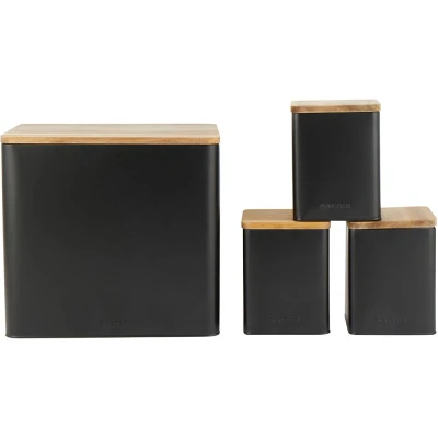 Salter BW12900EU7 Toronto 4 Piece Countertop Set Bread Bin, Tea, Sugar, Coffee Canisters, Storage Containers, Powder Coated Black Finish, Acacia Wooden Lids, Stylish, Jars, Black/Wooden