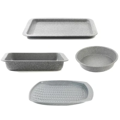 Salter COMBO 4723 Marblestone 4 Piece Bakeware Set Non Stick Baking Tray and Roasting Pan, Oven Sheet, Roaster, Perforated Chip Tray, Round Cake Tin, Durable Carbon Steel Bakeware, PFOA Free
