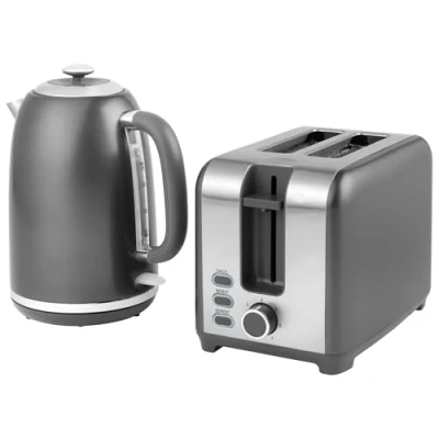 Perfect for busy kitchens, this Salter Cosmos grey kettle and toaster set allows you to quickly make a morning brew and snack. The fast boil kettle features a handy pull-top lid for easy access and a 360° swivel base,perfect for left and right-handed users. For added peace of mind, the kettle has a boil-dry sensor and auto-shut off technology, to prevent overheating and dry boiling. Boasting 930W, this versatile toaster is crafted with 7 levels of variable browning control so you can create perfectly browned toast. Offering multiple functions, this toaster has defrost, reheat & cancel functions and features a removable crumb tray for easy cleaning., Weight: 5.8753192823 Pounds, Manufacturer: Salter