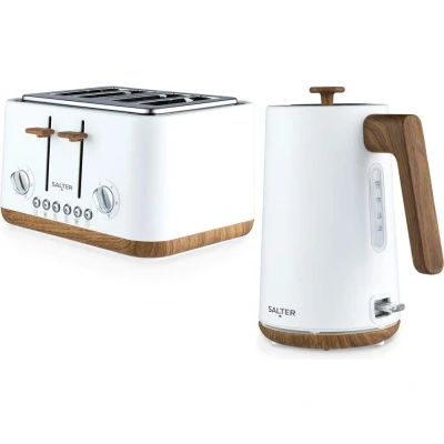 SALTER COMBO 9134 Toronto Jug Kettle & 4 Slice Toaster Bundle Matt White, White