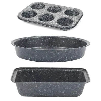 Salter COMBO 9288 Megastone Cake Tin Set Non Stick Bakeware Oven Trays, Carbon Steel, Muffin Tray, Round Pan, Loaf Tin, Easy Clean, Lightweight, Fixed Base, For Bread, Fairy Cakes, Sponge Cakes