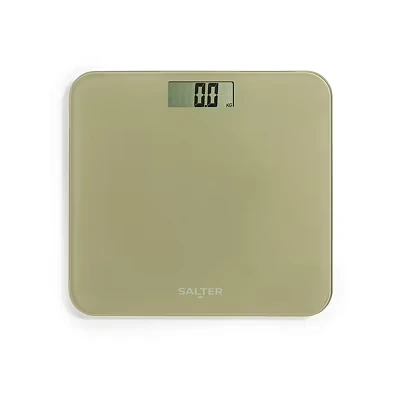 - Simply step on this Salter scale to get quick readings on the easy-to-read LCD display- See your measurements in the unit of your choice - the scales weigh in kilos, stones or pounds- Made from toughened glass, it can weigh up to 180 kg- The slim design means you can easily tuck it away between uses
