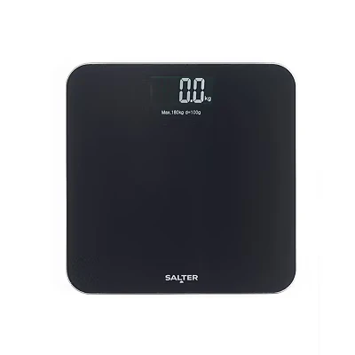 Salter Digital Bathroom Scale Electronic Bodyweight Scale, 180kg/28st 3lb, LCD Easy To Read Display, Step On Instant Readings, Includes Batteries, Textured Brushed Glass Platform, Black