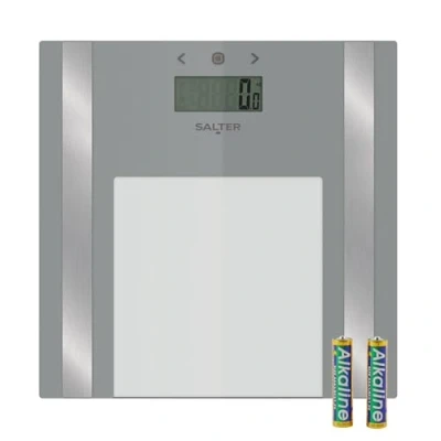 Salter Digital Glass Analyser Bathroom Scale Bodyweight, Body Fat, Water & BMI Scale, 180kg/28st 3lb, LCD Easy To Read Display, 8 User Memory, Athlete Mode, Includes Carpet Feet Batteries