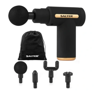 Good to know - This Salter massage gun's 6 speed levels mean you can move between a light and deep tissue massage - Its 4 interchangeable heads let you focus on your pain points - perfect after a long gym sesh - You can carry it in your kit bag - it's cordless and USB rechargeable - Check its power or change the settings with its touch screen control and LCD display