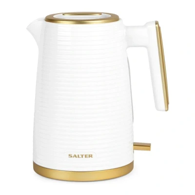 Salter EK5031WHT Palermo Electric 1.7L Kettle 3000W Rapid Boil, 360 Swivel Base, Auto Shut Off, Boil Dry Sensor, Anti Limescale Filter, Easy View Water Window, Strix Controller, White & Gold