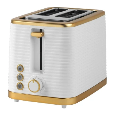 Salter EK5032WHT Palermo 2 Slice Toaster Defrost, Reheat & Cancel Functions, Wide Toasting Slots For Thicker Bread, 7 Levels Of Browning, Removable Crumb Tray, Indicator Lights, 930W, White Gold