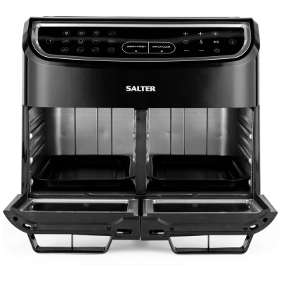 Salter EK5668GW Dual View Air Fryer Oven XL Multi Cooker with 12L Capacity, Add Divider for 5L Cooking, Removable Easy Clean Accessory Kit, 11 Cooking Function Level 2600 W