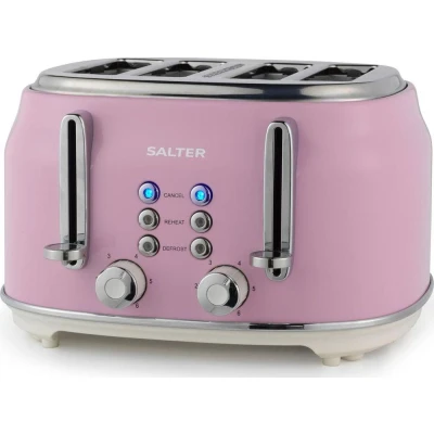 Salter EK5739PNK Retro 4 Slice Toaster "Wide Slots, 6 Browning Levels, Defrost, Reheat, Cancel Functions, Removable Crumb Tray, Extra Thick Bread/Bagels, High Lift Eject, Self Centring, 1630W, Pink