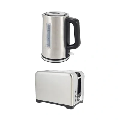 Salter Kettle & Toaster Set 2 Slice with 7 Browning Levels, Defrost, Reheat, Cancel Functions, 1.7 Litre Rapid Boil Safety Features, Removable Limescale Filter, Stainless Steel