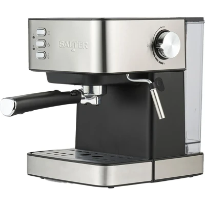 Currys- With 15-bar pressure this Salter Coffee Machine will make you a delicious rich flavourful cuppa every morning - With the milk frother, you don't just need to stick to espresso - make a cappuccino instead - A 1.6 litre removable water tank means you won't need to refill to often but it'll be easy to do when needed - It's really easy to choose your settings with the simple dial and button controls