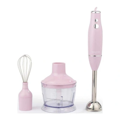 Salter Retro 3 in 1 Blender Set 600W Powerful Motor, 2 Speed Settings, Stainless Steel Whisk & Blades, 500ml Food Chopper Bowl, Multifunctional Hand for Whisking, Blending Chopping, Pink