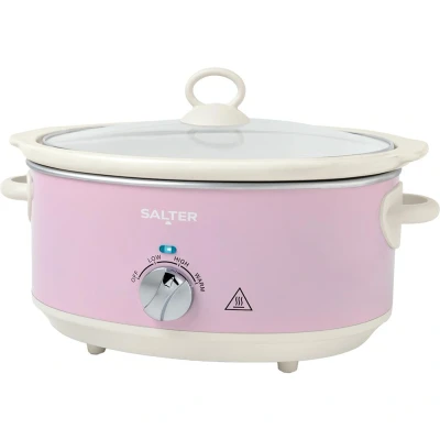 Salter Retro 6.5L Slow Cooker 3 Heat Settings & Keep Warm, Dishwasher Safe Ceramic Pot, Tempered Glass Lid, Cool Touch Handles, Family Cooking, Stews, Casseroles, Curries, Pink, 200W, EK6250PNK