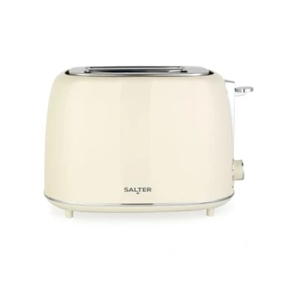 Salter Retro Cream 2 Slice Toaster Wide Slots, Plastic, 6 Browning Levels, Defrost, Reheat & Cancel, High Lift Eject, Removable Crumb Tray, Self Centring, Anti Jam Function, Vintage Design, 815W