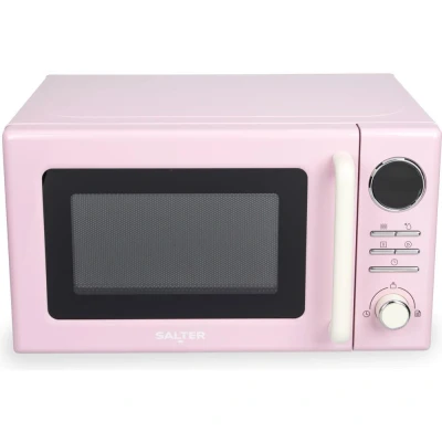 Salter Retro Digital Pink Microwave 20 Litre, Defrost by Time/Weight, 25.5 cm Glass Turntable, 95 Minute Timer, 8 Auto Cooking Presets, Solo Oven, Easy Clean, Button/Dial Control, 800W