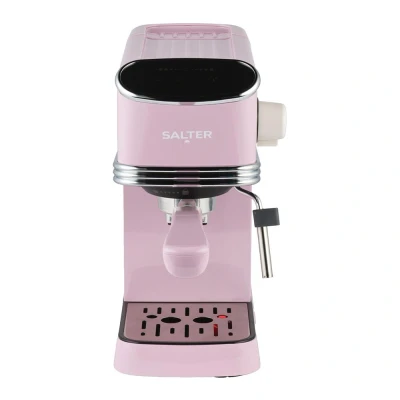 Salter Retro Espresso Machine Coffee with Milk Frothing Wand, Cappuccino/Latte, 20 Bar Pressure Pump, 1.35L Water Tank, Ground Coffee, Single/Double, Digital LED Display, 1350W, EK6185PNK