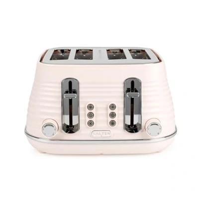 Salter Ripple 4 Slice Toaster Defrost, Reheat, Cancel, Wide Toasting Slots, Bagels/Crumpets, 6 Browning Levels, Removable Crumb Tray, High Lift, Self Centring, Textured Design, Pink, 1630W