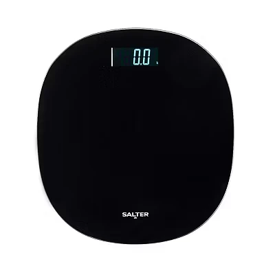 Salter Round Bathroom Scale Electronic Body Weight Composition, 180kg Capacity, Digital LCD Display, Step On, Instant Readings, Rounded Shape, Black Glass Platform, 0.1kg Precision