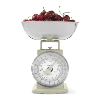 - This Salter kitchen scale's got a classic retro dial that's big and easy to read- No batteries needed - it's fully mechanical, so it's always ready when you are- It displays both metric and imperial units, so you can follow any recipe with confidence- The removable bowl is dishwasher-safe, making cleanup simple after baking or cooking- It can weigh up to 5 kgs, so it's great for bigger batches