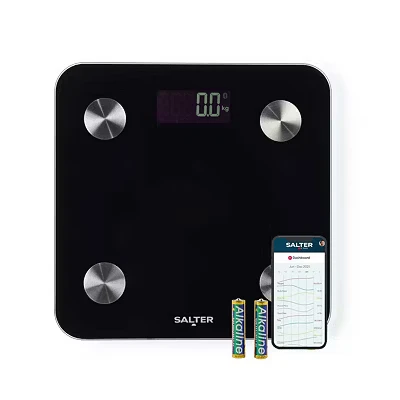 - This Salter smart bathroom scale not only measures your weight but also body fat, BMR and BMI- It has dedicated child and athlete modes for more personalised readings- Sync your progress via Bluetooth with the Salter Health app to stay on top of your fitness goals- You can add up to eight users, so each family member can have their own profile- Simply step on to get instant weight readings on the clear, easy-to-read LCD display- It's built to handle up to 180 kg, so it's got you covered