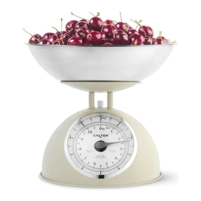 Salter Timeless Mechanical Kitchen Scale Cooking Scale, 2L Dishwasher Safe Bowl, Easy Read Dials, Large Digits, No Batteries, Retro Design, 5kg Capacity, Weigh Ingredients, Classic Look, Cream