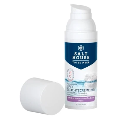 Regenerating: the highly concentrated formula with valuable omega fatty acids protects the skin from drying out for a long time and has an intensive moisturising effect. Perfect for regenerated and supple skin that remains optimally nourished all day long. Results: This cream is ideal for sensitive or easily irritated skin. It soothes irritation and gives the skin noticeably more suppleness, so it feels soft and smooth. Mask or night care: use the cream as an intensive face mask or as a rich night cream to optimally care for dry skin. It provides deep moisture overnight and supports skin regeneration Dermatologically confirmed: The Dead Sea lipid face cream from Salthouse is ideal for sensitive skin types and has been dermatologically tested for its excellent compatibility. It is the perfect basic care for eczema and psoriasis and supports the natural skin barrier.