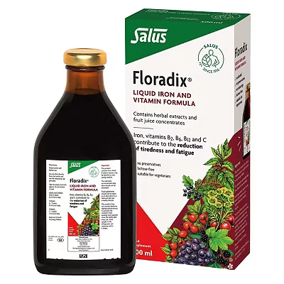 Floradix Liquid Iron and Vitamin Formula is a lactose-free, natural liquid supplement providing iron and essential B vitamins with vitamin C to reduce tiredness and support energy levels. Ideal for menstruating women, pregnant or lactating mothers, athletes, and older adults, it’s made with herbal extracts, fruit juices, and no artificial additives.