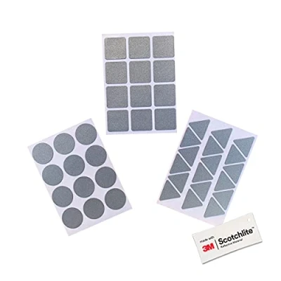 Made with 3M Reflective Material and 3M adhesive to increase visibility in poor weather conditions and at night. The stickers can be seen by drivers from up to 180m away at night. Perfect for use on bike frames, seats, backpacks, helmets, prams, strollers, wheelchairs, etc. Strong adhesive power on plastic, metal, textile and wood. Not machine-washable. Set with pre-cut stickers (12 circles, 12 squares, 18 triangles) Please note: Not suitable for rim brakes (bike brakes which apply pressure to the wheel).