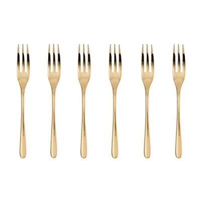 An essential and minimalist design that produces a strong emotional impact. The sinuous teardrop shape of Sambonet Taste invites you to try it! Sweet forks set for 6 people, perfect for everyday use Impress your guests with the refined and sparkling gold colourway Presented in an elegant gift box, ideal for young, dynamic and sparkling equipment Set includes 6 dessert forks, 14.5 cm long, ideal for enjoying cakes or other desserts. Collection only available in sets (no single cutlery) Made of stainless steel with PVD finish, it gives surfaces hardness, durability and fine colouring. Dishwasher safe