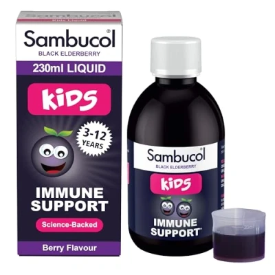 KIDS IMMUNE SUPPORT - Sambucol Kids Liquid contains natural Black Elderberries plus Vitamin C to help support the immune system. Suitable for children aged 3-12 years, perfect for all-year-round immune support BEAT THE BUGS - Great for back-to-school and winter wellness, often taken as a preventative measure to boost little immune systems TASTE - A delicious berry flavour liquid food supplement founded on the unique qualities of Black Elderberries. Suitable for Vegans. SCIENTIFICALLY TESTED - Sambucol is backed by over 25 years of scientific research, making it the most extensively researched elderberry supplement range in the world. THE ORIGINAL BLACK ELDERBERRY - Sambucol is The UK’s No.1 Brand for Immunity (Nielsen MAT 02/2025. ) Sambucol was developed by a world-renowned scientist in 1991, who recognised the potential of the phytonutrient flavonoids (anthocyanins) present in the Black Elderberry (Sambucus nigra) to maintain its natural effects.