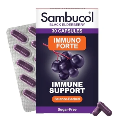 FAMILY IMMUNE SUPPORT - Sambucol Immune Forte Capsules contains Black Elderberries as well as Vitamin C and Zinc to help strengthen the immune system. Suitable for adults and children aged 12+, perfect for all-year-round immune support. EASY TO SWALLOW - Sambucol is a range of immune boosting food supplements founded on the unique qualities of Black Elderberries. Sambucol Immuno Forte Capsules are perfect for travel and on-the-go helping your immune system all-year-round SCIENTIFICALLY TESTED - Sambucol was developed by a world-renowned scientist in 1991 who recognised the potential of the flavonoids present in the Black Elderberry. Sambucol is backed by over 25 years of scientific research, making it the most extensively researched elderberry product in the world THE ORGINAL BLACK ELDERBERRY - Sambucol is the original Black Elderberry brand developed in 1991. Sambucol was founded on the plant-based properties of Black Elderberry (Sambucus nigra) using a preparation method that helps preserve the rich, phytonutrient flavonoids (anthocyanins) present in the Black Elderberries to maintain its natural effects. Sambucol, The UK’s No.1 Brand for Immunity (Nielsen MAT WK11 FEB 2023)
