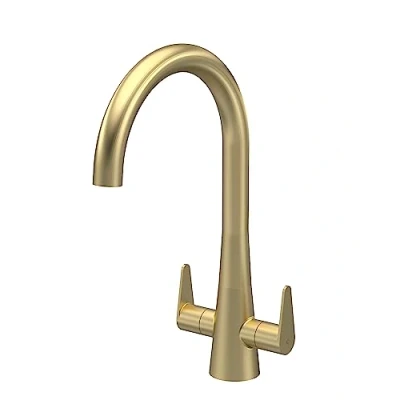 Samir Mono Kitchen Sink Mixer Tap Dual Lever Handle Brushed Brass Nuie