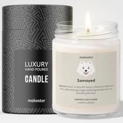 Samoyed Candle Over 100+ Breeds 220g Soy Wax Madagascan Vanilla & Jasmine Gift Dog Candles by Makester