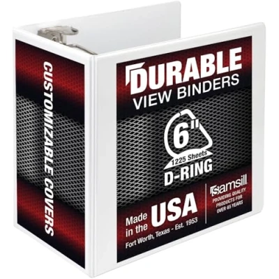 LAREGEST ON THE MARKET ? When you work hard and success follows, a rapidly growing client may need a much larger binder for effective organization of all the necessary paperwork in one place, the Original 6? 3 ring binder is the largest view binder available that will help you keep everything in a single, easily accessible location HEAVY-DUTY CONSTRUCTION - The Titan six inch binder uses premium thick PVC cover material in combination with heavy-duty chipboard made with 100% recycled material. FAST AND EASY CUSTOMIZATION ? The Samsill Titan View Binder is designed to allow top loading of inserts into the front cover, back cover, and spine ? Simple and quick insertion/removal of your personalized printed material MADE IN USA - This binder is manufactured in the USA of domestic and imported part International products have separate terms, are sold from abroad and may differ from local products, including fit, age ratings, and language of product, labeling or instructions.