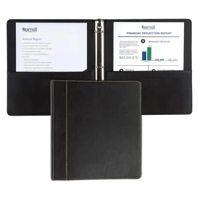 PROFESSIONAL GRADE Leather 3 Ring Binder designed for all modern-age professionals Its bonded leather cover bares the look & feel of genuine black leather MINIMALIST DESIGN The clean styling of this business portfolio binder is well-supported by the timeless and gender-neutral, contrasting color scheme with black exterior & cream accent stitching VERSATILE THREE RING BINDER - This leather binder notebook can be used for a variety of needs- art portfolio, planner binder, sermon notes, wedding binder, business presentation folder and more ADDITIONAL DOCUMENT STORAGE - Presentation binder includes two bonded leather interior pockets for loose documents or unpunched sheets International products have separate terms, are sold from abroad and may differ from local products, including fit, age ratings, and language of product, labeling or instructions.