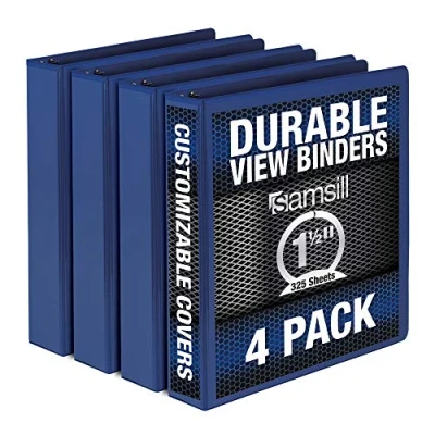 1 1/2-Inch Binder: Made of durable polypropylene and chipboard, our three ring binder is ideal for daily use at home, school, and the office Easy Customization: 1.5-inch binders feature a clear overlay with a non-glare finish; Our 3 ring binders allow for complete customization – perfect for organization and presentations Archival Safe: Made of PVC-free, non-stick polypropylene, our 1 1/2-inch 3 ring binder will not transfer ink or lift copy from materials inserted into the cover or placed inside Professional Look: Designed to impress during presentations and look great on a shelf, our 3 ring binder features back-lid-mounted round binder rings for a rivetless spine Why Samsill: We have been manufacturing quality USA-made binders for school, work, and home in Fort Worth, Texas, since 1953 using domestic and imported materials
