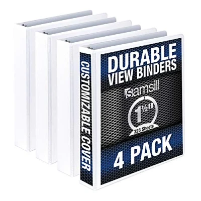 SCHOOL SUPPLIES AND OFFICE SUPPLIES - Each 3 ring durable binder is made with strong polypropylene and THICKER chipboard (.094") compared to an economy view binder (.07"). Allowing your binders to last longer! CUSTOMIZABLE BINDER - Do you have a presentation or project you're working on? Binders 1.5 inch have a clear view overlay with a non-glare finish on the front, back, and spine. Making customization easy yet professional looking! DURABLE BINDER - A 1.5 inch white binders hold 325 sheets of paper! Perfect for small projects or presentations. Rings mounted on back lid allows pages to lay flat & reduce wear on punched pages. BULK 4 BINDER MULTI PACK - Value pack contains 4 - 1.5 inch 3 ring binders to help organize ALL your papers for business, school, office, projects, and more! Includes 4 white durable binders. International products have separate terms, are sold from abroad and may differ from local products, including fit, age ratings, and language of product, labeling or instructions.