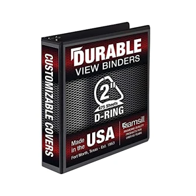 Why Samsill? - Made in the USA and manufactured in Fort Worth, Texas we have been providing quality binders since 1953! (Using domestic and imported materials) Durable Binder - A 2 inch black binder holds up to 475 sheets of paper! Perfect for small projects or presentations. Rings mounted on back lid allows pages to lay flat & reduce wear on punched pages. School Supplies and Office Supplies - Each 3 ring durable binder is made with strong polypropylene and THICKER chipboard (.094") compared to an economy view binder (.07"). Allowing your binders to last longer! Customizable Binder - Do you have a presentation or project you're working on? Our binders have a clear view overlay with a non-glare finish on the front, back, and spine. Making customization easy yet professional looking! Archival Safe - Made with PVC free and non-stick polypropylene, each archival binder is acid-free and will not transfer ink or lift copy from material inserted in cover, binder spine, or placed inside.