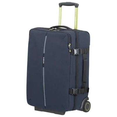 Travel bag with wheels 57 cm (hand luggage: travel for 2 days): 36 x 24 x 57 cm, 39 L, 2.30 kg Anti-theft: Securipak provides the ultimate security experience, this duffle features a top pocket with an RFID shield to protect your cards, the reflective details on the front improve visibility to travel safely, day and night Built-in USB port: Charge your electronic devices anywhere, anytime with the built-in USB port Outer and inner material made from recycled PET bottles as part of our Recyclex Material Technology Initiative