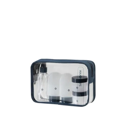 Samsonite TA Revolution Travel Bottle Set for Hand Luggage, 3 x 60 ml Silicone Bottles and 2 30 Containers, Aeroplane Set, Toiletry Bag Transparent, Midnight Blue