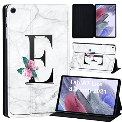 Samsung Galaxy Tab A7 Lite 8.7 Case 2021 SM T225/SM T220,Slim Light Cover Stand Hard Shell for 8.7Inch (letter E on white marble)