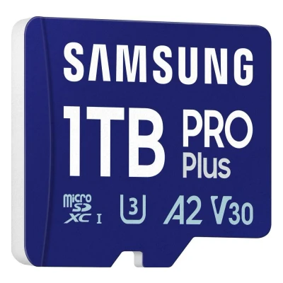 Samsung PRO Plus (2024) microSD card + SD adapter, 1 TB, UHS I U3, Full HD & 4K UHD, 180 MB/s read, 130 write, memory for smartphone, action cam, handheld console, MB MD1T0SA/EU